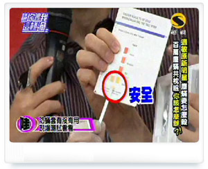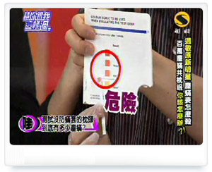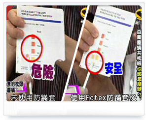 4.再使用进口的试纸做过敏原的检测,让所有的来宾都亲眼目睹有包复Fotex防蹒套的检测结果呈现正常值(黄色),代表成功阻隔了过敏原!