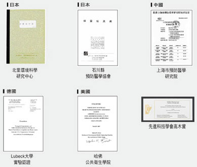 自动除菌离子技术荣获全球13个机关认证 下列为2000年10月至2008年12月期间,全球13个研究机构检证自动离子对27种有害物质的功效。