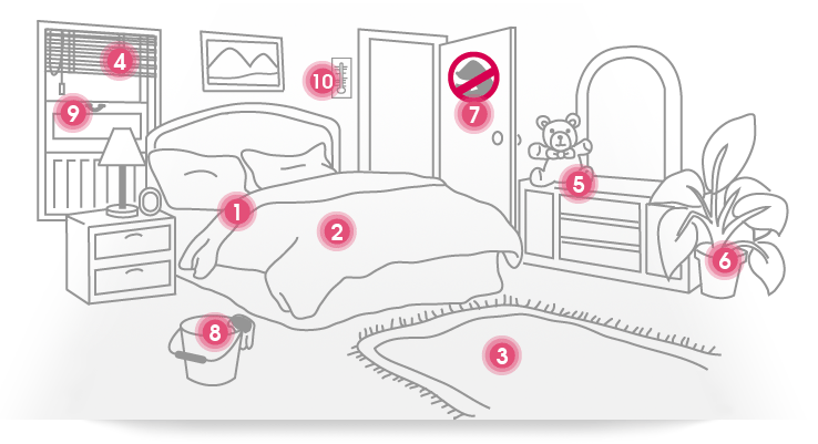 尘螨容易在有毛的动物身上繁殖,如已饲养宠物请每月至少需清洗这些宠物两次,且避免宠物进入室内(尤其是孩童的卧室)。 |